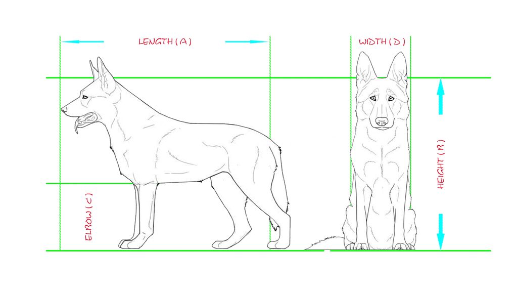 SIZE B = Height of the animal, when standing, from tip of the ears or top of the head (whichever is higher) to the floor